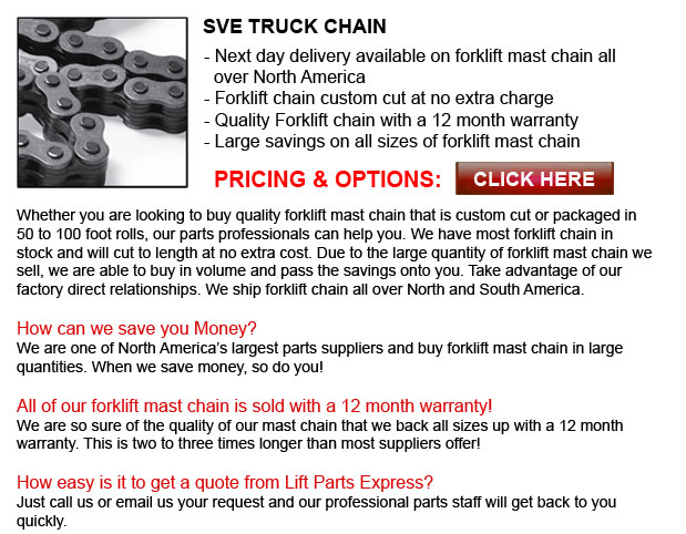 TOLL FREE: 1-888-633-0283 www.lifttruckchain.com Email Us Lift Parts Express prides itself on the diversity and volume of parts we carry. Regardless of the model of lift truck you run, we have the parts you need. The cost savings we can offer will... About Us | ||